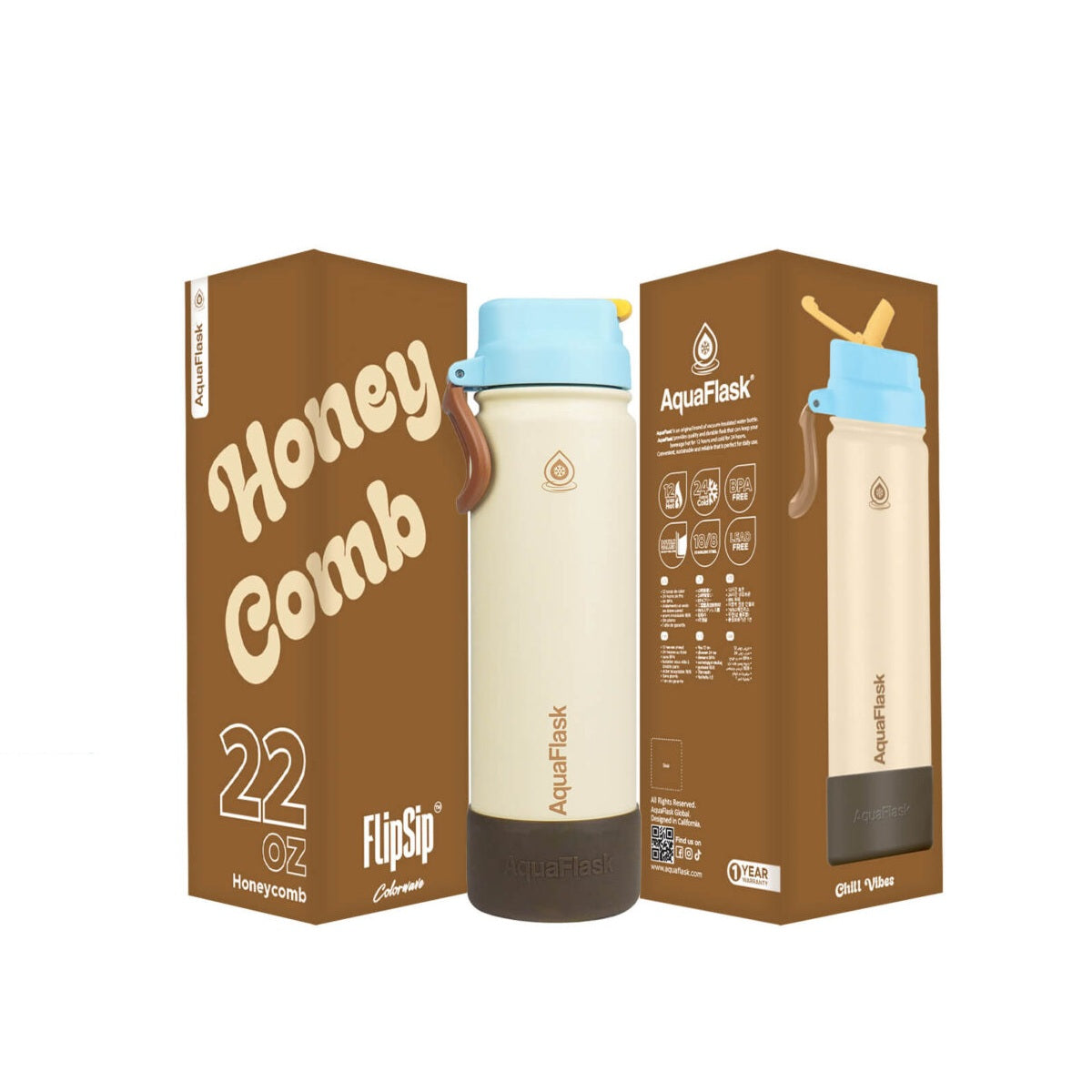 AquaFlask (22oz) Colorwave Flip Sip Insulated Water Bottle Double Wall Stainless Steel Hot & Cold